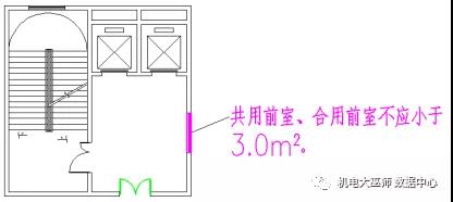 共用前室、合用前室不應(yīng)小于3.0 m2。