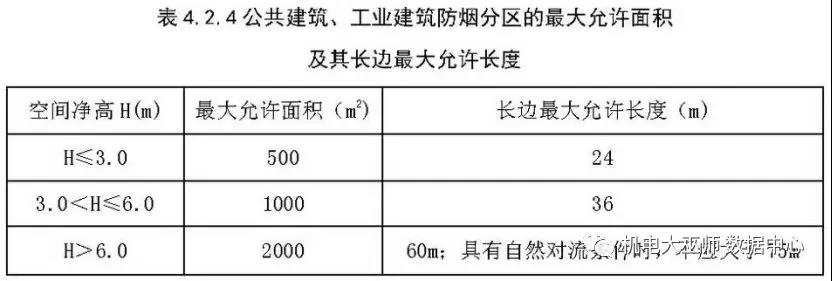 注:公共建筑、工業(yè)建筑中的走道寬度不大于2.5m時,其防煙分區(qū)的長邊長度不應(yīng)大于60m。